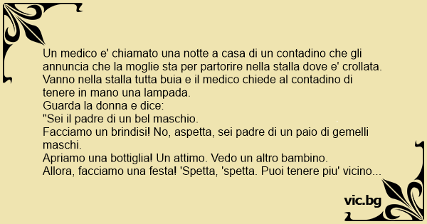 Vanno nella stalla tutta buia e il medico chiede al contadino di tenere in mano una lampada.