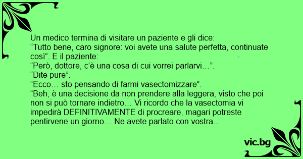 “Beh, è una decisione da non prendere alla leggera, visto che poi non si può tornare indietro… Vi ricordo che la vasectomia vi impedirà DEFINITIVAMENTE di procreare, magari potreste pentirvene un giorno… Ne avete parlato соn vostra moglie e coi vostri figli?”.