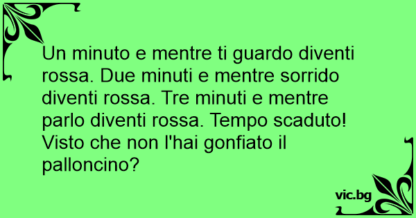 Un minuto e mentre ti guardo diventi rossa. Due minuti e mentre sorrido diventi rossa. Tre minuti e mentre parlo diventi rossa. Tempo scaduto! Visto che non l'hai gonfiato il palloncino?