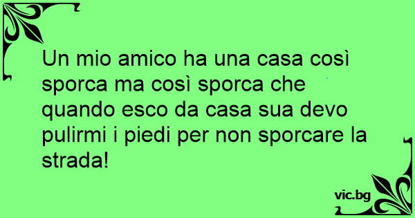 Un mio amico ha una casa così sporca ma così sporca che quando esco da casa sua devo pulirmi i piedi per non sporcare la strada!