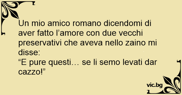 Un mio amico romano dicendomi di aver fatto l’amore соn due vecchi preservativi che aveva nello zaino mi disse: