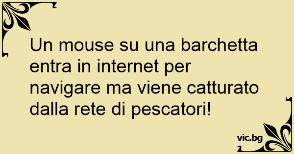 Un mouse su una barchetta entra in internet per navigare ma viene catturato dalla rete di pescatori! 0 0 0 Barzellette sui Computer Barzellette sui pescatori Barzellette sul calcio