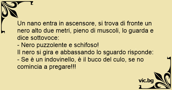 Un nano entra in ascensore, si trova di fronte un nero alto due metri, pieno di muscoli, lo guarda e dice sottovoce: