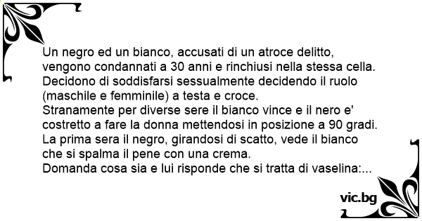 Poi una sera vince il nеgrо ed e' il bianco che si deve mettere a 90 gradi.