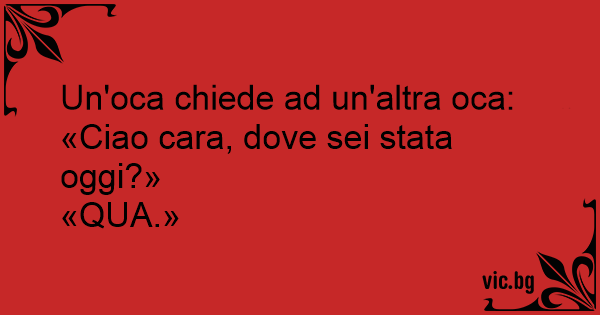 Un'oca chiede ad un'altra oca: «Ciao cara, dove sei stata