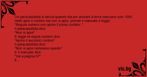 Un paracadutista si lancia quando sta per arrivare a terra mancano solo 1000 metri apre il cordino ma non si apre, prende il manuale e legge: