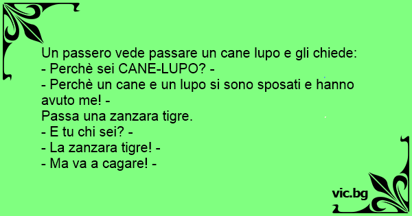 - Perchè un cane e un lupo si sono sposati e hanno avuto me! -