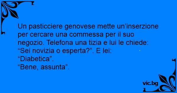 Un pasticciere genovese mette un’inserzione per cercare una commessa per il suo negozio. Telefona una tizia e lui le chiede: