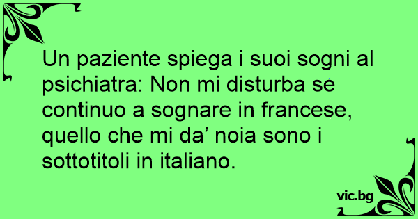 Un paziente spiega i suoi sogni al psichiatra: Non mi disturba se continuo a sognare in francese, quello che mi da’ noia sono i sottotitoli in italiano.