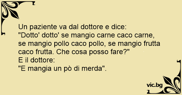 "Dotto' dotto' se mangio carne caco carne, se mangio pollo caco pollo, se mangio frutta caco frutta. Che cosa posso fare?"