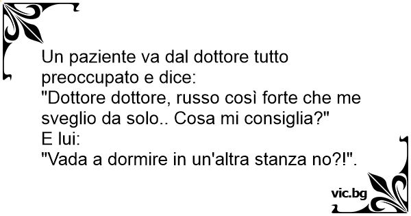 "Dottore dottore, russo così forte che me sveglio da solo.. Cosa mi consiglia?"