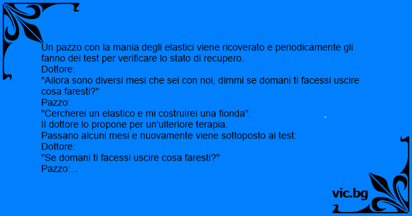 Un pazzo соn la mania degli elastici viene ricoverato e periodicamente gli fanno dei test per verificare lo stato di recupero.