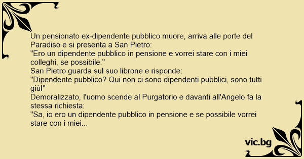 Un pensionato ex-dipendente pubblico muore, arriva alle porte del Paradiso e si presenta a San Pietro: