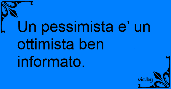 Un pessimista e’ un ottimista ben informato.