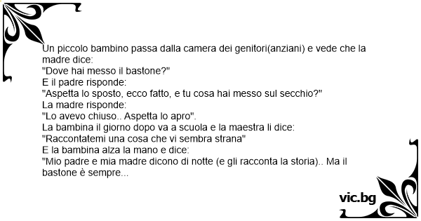 Un piccolo bambino passa dalla camera dei genitori(anziani) e vede che la madre dice: