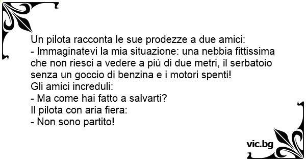 - Immaginatevi la mia situazione: una nebbia fittissima che non riesci a vedere a più di due metri, il serbatoio senza un goccio di benzina e i motori spenti!