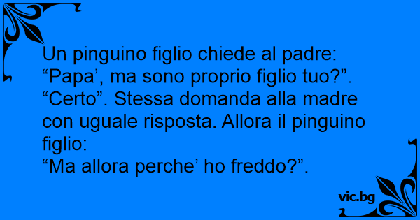 “Certo”. Stessa domanda alla madre соn uguale risposta. Allora il pinguino figlio:
