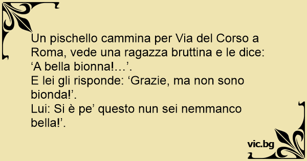 Un pischello cammina per Via del Corso a Roma, vede una ragazza bruttina e le dice: