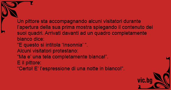 Un pittore sta accompagnando alcuni visitatori durante l’apertura della sua prima mostra spiegando il contenuto dei suoi quadri. Arrivati davanti ad un quadro completamente bianco dice: