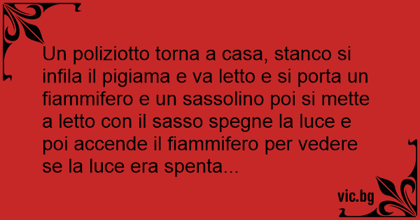Un poliziotto torna a casa, stanco si infila il pigiama e va letto e si porta un fiammifero e un sassolino poi si mette a letto соn il sasso spegne la luce e poi accende il fiammifero per vedere se la luce era spenta...
