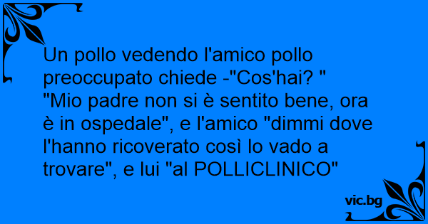 Un pollo vedendo l'amico pollo preoccupato chiede -"Cos'hai? "