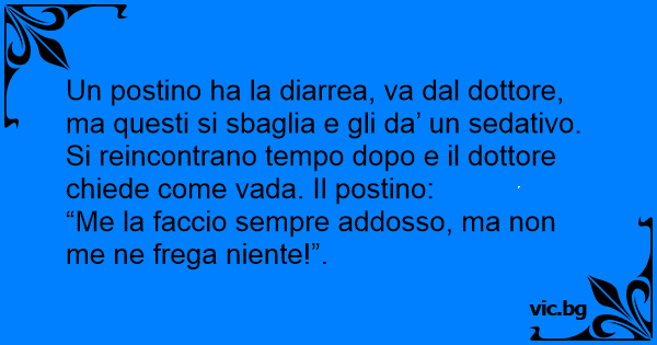Un postino ha la diarrea, va dal dottore, ma questi si sbaglia e gli da’ un sedativo. Si reincontrano tempo dopo e il dottore chiede come vada. Il postino: