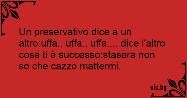 Un preservativo dice a un altro:uffa.. uffa.. uffa.... dice l'altro cosa ti è successo:stasera non so che саzzо mattermi.