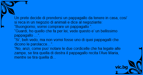 Un рrете decide di prendersi un pappagallo da tenere in casa, cosi’ si reca in un negozio di animali e dice al negoziante: