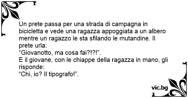 Un рrете passa per una strada di campagna in bicicletta e vede una ragazza appoggiata a un albero mentre un ragazzo le sta sfilando le mutandine. Il рrете urla: