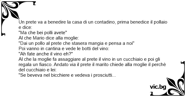 Al che la moglie fa assaggiare al рrете il vino in un cucchiaio e poi gli regala un fiasco. Andato via il рrете il marito chiede alla moglie il perchè del cucchiaio e lei: