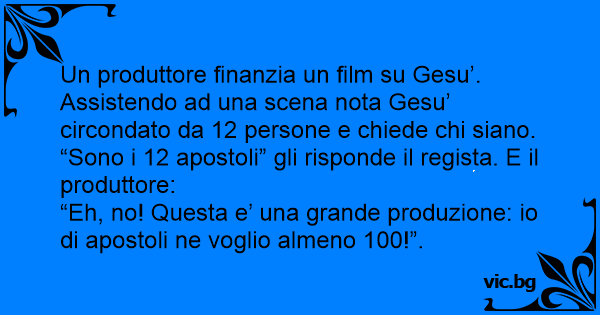 Un produttore finanzia un film su Gesu’. Assistendo ad una scena nota Gesu’ circondato da 12 persone e chiede chi siano. “Sono i 12 apostoli” gli risponde il regista. E il produttore: