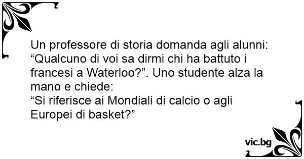 “Qualcuno di voi sa dirmi chi ha battuto i francesi a Waterloo?”. Uno studente alza la mano e chiede: