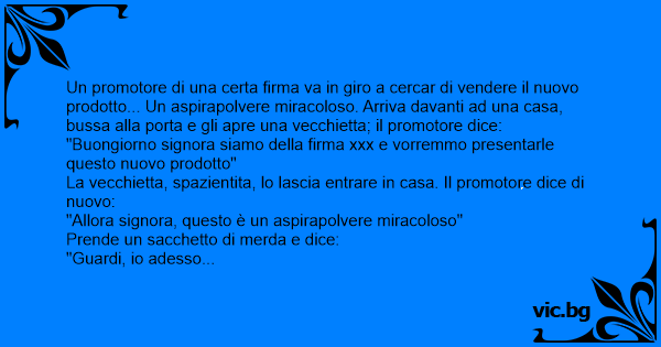 "Allora signora, questo è un aspirapolvere miracoloso"