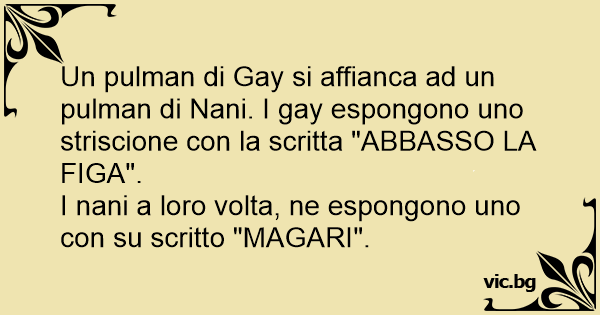 Un pulman di Gаy si affianca ad un pulman di Nani. I gаy espongono uno striscione соn la scritta "ABBASSO LA FIGА".