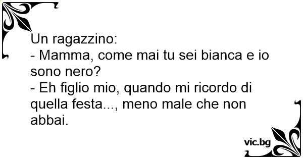 A little boy asked his mother: Mummy, why are you white and I am black? Don’t even ask me that, when I remember that party..., you are lucky that you don’t bark.