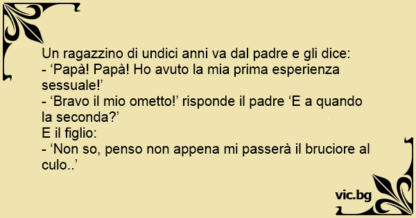 - ‘Bravo il mio ometto!’ risponde il padre ‘E a quando la seconda?’