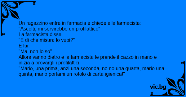 Un ragazzino entra in farmacia e chiede alla farmacista: