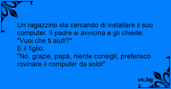 Un ragazzino sta cercando di installare il suo computer. Il padre si avvicina e gli chiede: