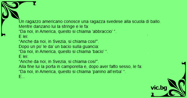 Un ragazzo americano conosce una ragazza svedese alla scuola di ballo. Mentre danzano lui la stringe e le fa: