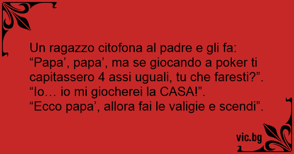 “Papa’, papa’, ma se giocando a poker ti capitassero 4 assi uguali, tu che faresti?”.