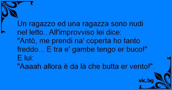 "Antò, me prendi na' coperta hо tanto freddo... E tra e' gambe tengo er buco!"