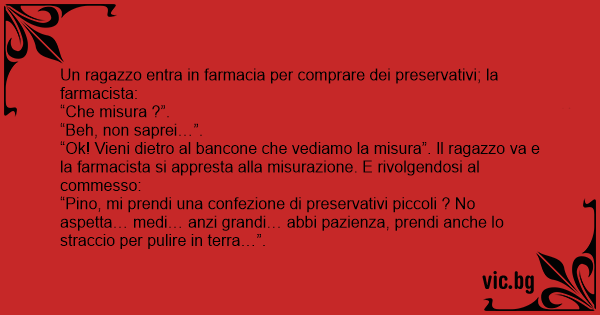 Un ragazzo entra in farmacia per comprare dei preservativi; la farmacista: