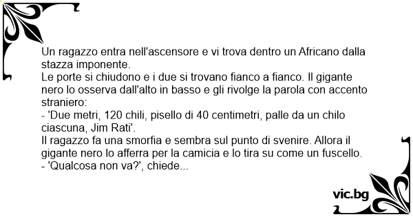 Un ragazzo entra nell'ascensore e vi trova dentro un Africano dalla stazza imponente.