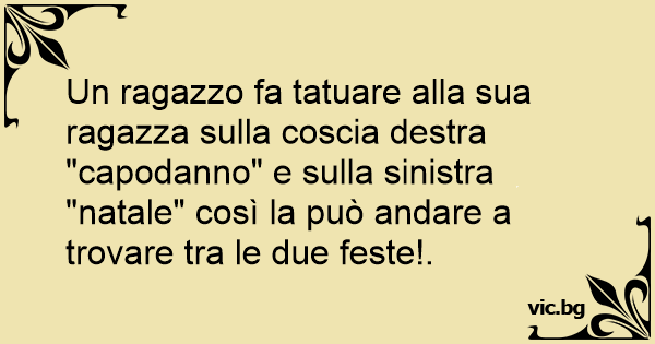 Un ragazzo fa tatuare alla sua ragazza sulla coscia destra "capodanno" e sulla sinistra "natale" così la può andare a trovare tra le due feste!.