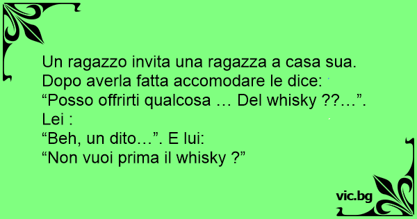 Un ragazzo invita una ragazza a casa sua. Dopo averla fatta accomodare le dice: