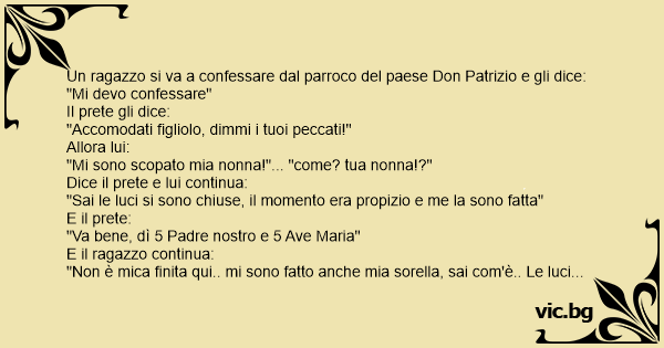 Un ragazzo si va a confessare dal parroco del paese Don Patrizio e gli dice: