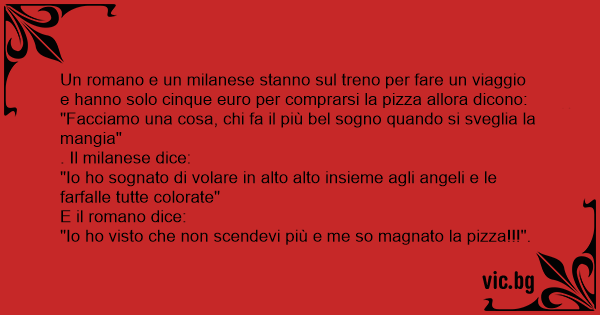 Un romano e un milanese stanno sul treno per fare un viaggio e hanno solo cinque euro per comprarsi la pizza allora dicono:
