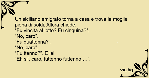 Un siciliano emigrato torna a casa e trova la moglie piena di soldi. Allora chiede:
