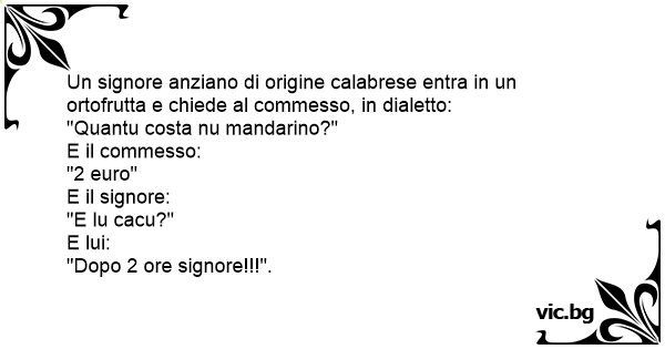 Un signore anziano di origine calabrese entra in un ortofrutta e chiede al commesso, in dialetto: