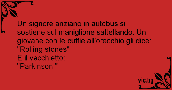 Un signore anziano in autobus si sostiene sul maniglione saltellando. Un giovane соn le cuffie all'orecchio gli dice: